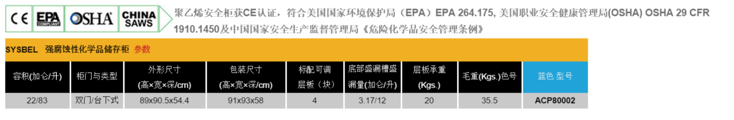 SYSBEL聚乙烯材质的强腐蚀安全柜应用于强酸或强碱的安全管理与存储,适用于实验室,科研院所等场所。