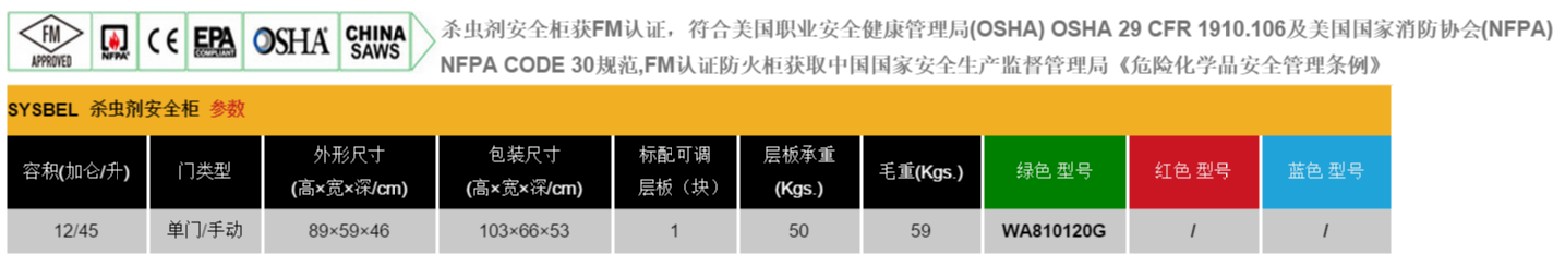 西斯贝尔SYSBEL是一家专业的上海实验室安全柜制造商和供应商,简称为专业的危险化学品安全柜厂家,长期致力于生产制造“fm防火柜”又称“化学品安全柜”“防火柜”,是国内首家获得美国FM认证的企业,西斯贝尔SYSBEL高品质杀虫剂防火安全柜专用于存储杀虫剂,农药,化肥,消毒剂等化学品。适用于草坪护理,高尔夫球场,农场,公园,游乐场等场所。