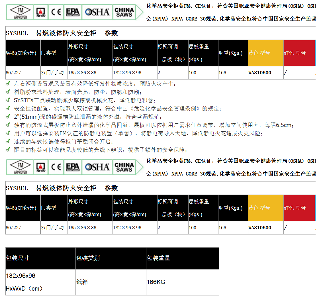 FM认证的SYSBEL高品质易燃液体安全存储柜广泛应用于存储易燃液体(低,中闪点液体,液体闪点<37.8℃),降低火灾风险,保障生命财产安全。
